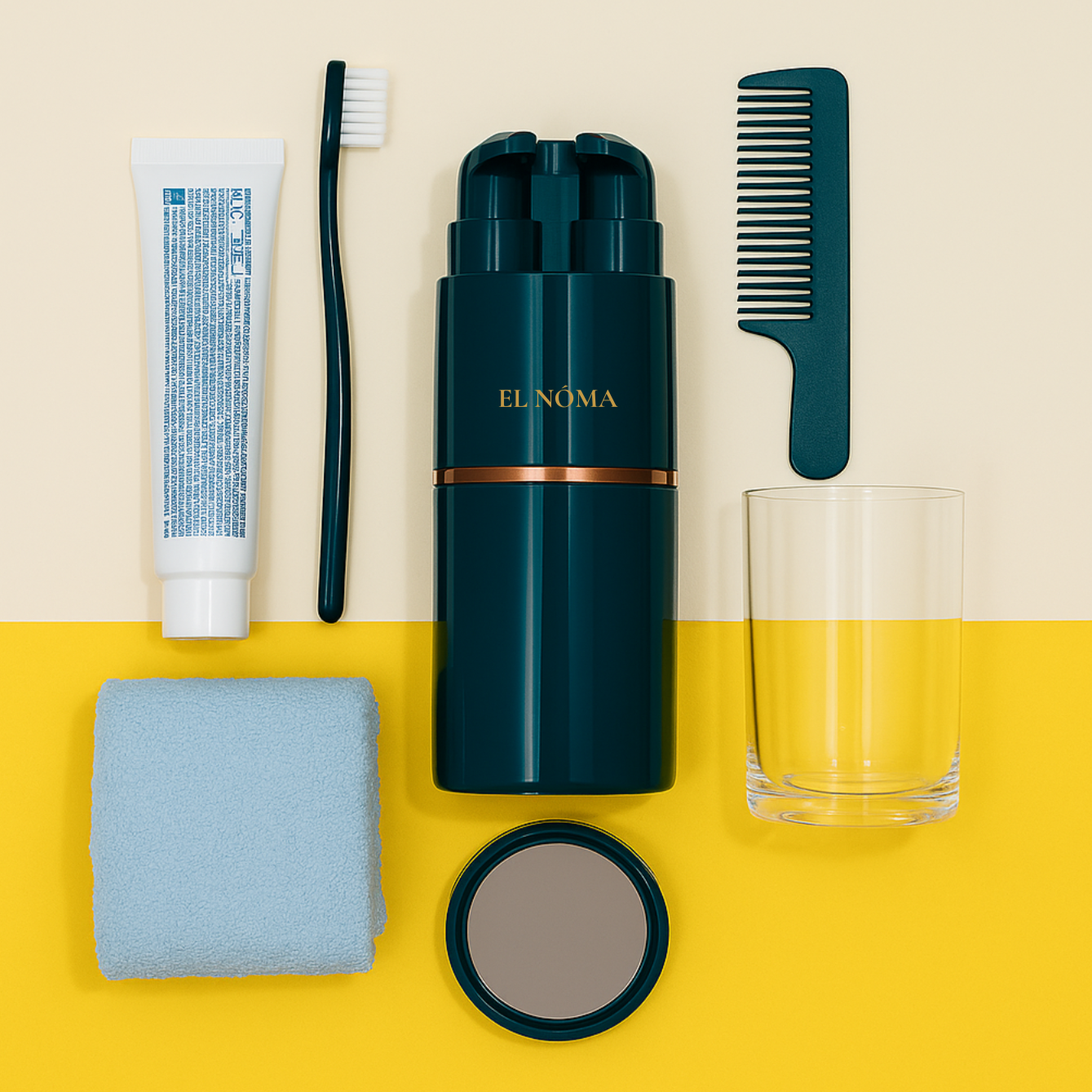 ELNÓMA Travel Kit събира всичко необходимо за твоята лична хигиена в елегантен и удобен формат. Лек, компактен и перфектен за ръчен багаж.