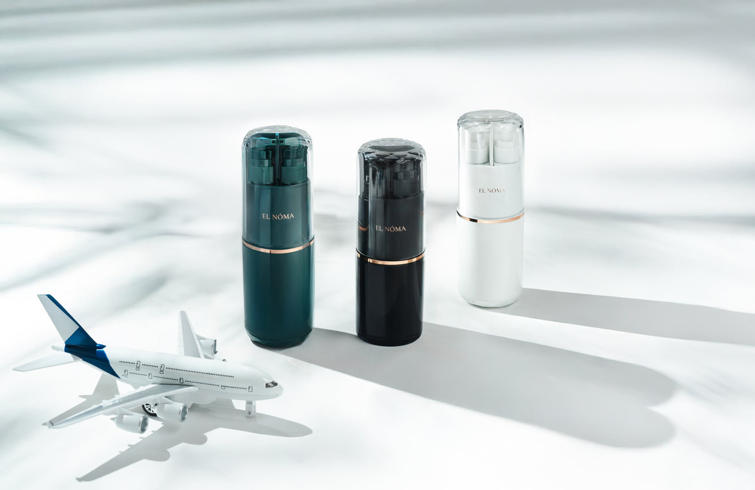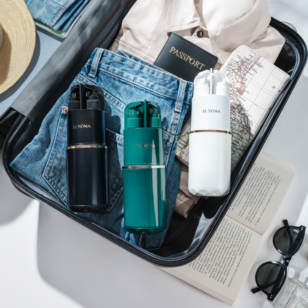 С "ELNÓMA Travel kit" имаш всичко необходимо за хигиената си, събрано в стилен и компактен дизайн. Просто напълни дозаторите с любимите си козметични продукти, вземи комплекта със себе си и се наслади на удобството, където и да си!